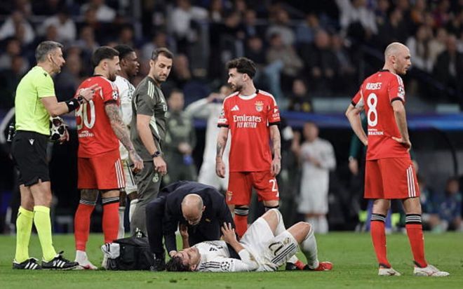 这一幕发生在比赛第73分钟,皇马中卫阿森西奥和队友卡马文加在争顶时撞在一起。这次碰撞导致阿森西奥重伤,被担架抬出场外,并且戴上了颈托固定。最新消息显示,阿森西奥已被救护车送往医院,接受移动重症监护检查,情况危急。