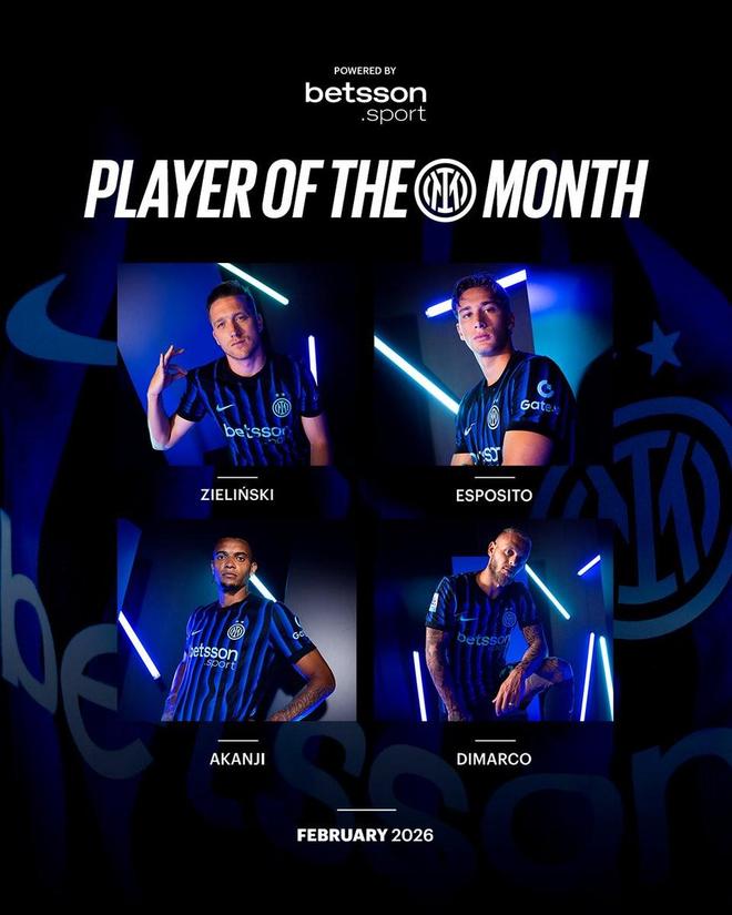 北京时间3月4日,国际米兰官方公布了球队2月最佳球员候选,其中阿坎吉、皮奥、迪马尔科、泽林斯基四人在列。